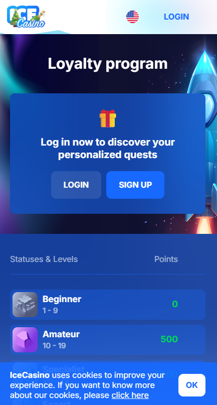 | Ice Casino | 10+ statusov | Misie, kvesty, bonusy do 90%, jednoduché postupovanie |