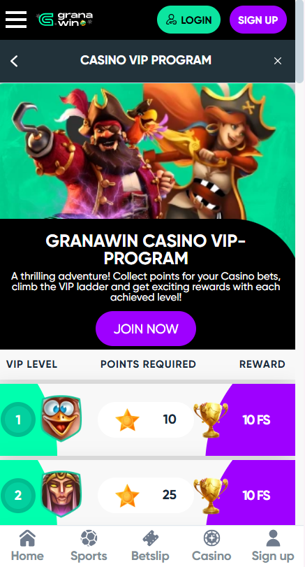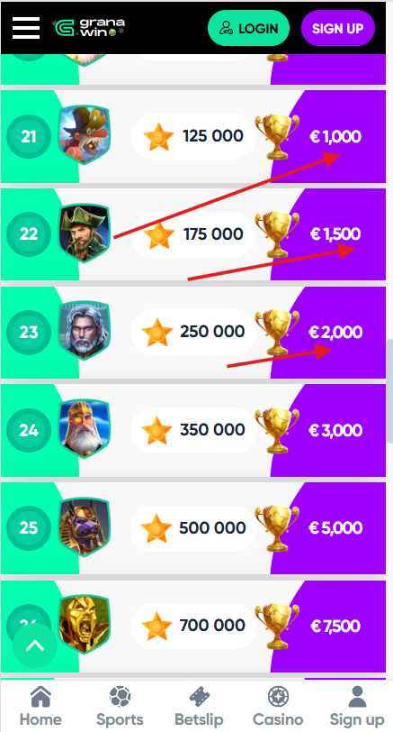 | Granawin | 30 | Jasná tabuľka bodov, bonusy na každej úrovni, odmeny až do 100000€ |