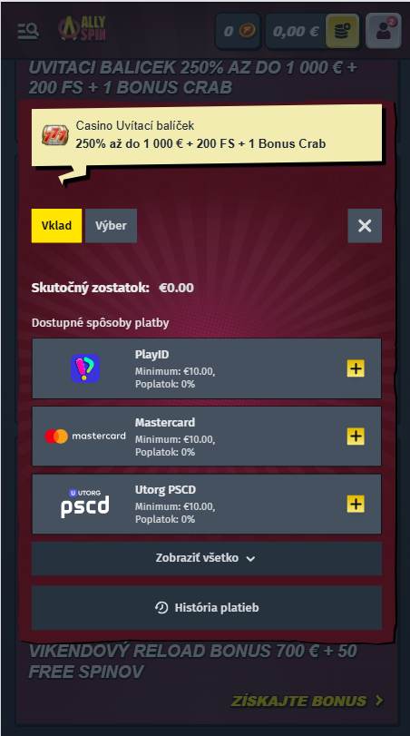 AllySpin kasíno recenzia 2026 – bonusy, hry a možnosti platformy
