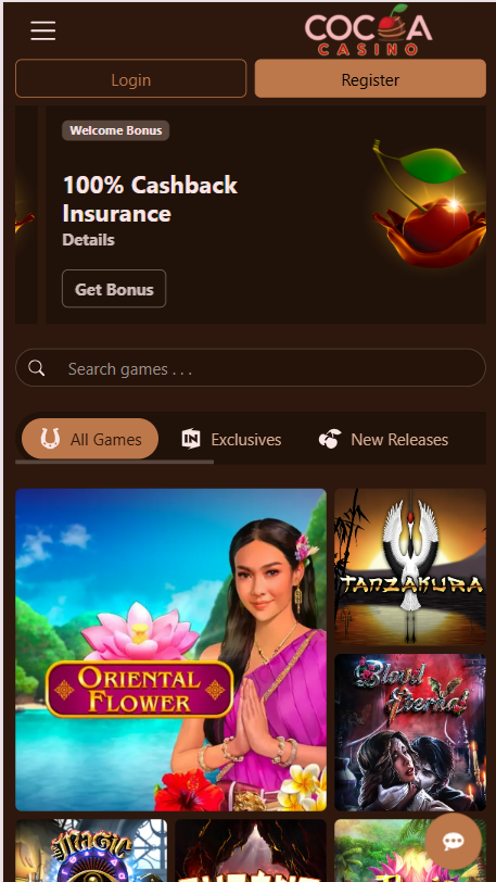 Najväčším lákadlom je uvítací balík v podobe 100% cashback insurance. Nejde o klasický vkladový bonus, ale o záruku, že ak prehráš svoj prvý vklad, kasíno ti vráti celú sumu. Stačí napísať podpore po tom, čo minieš svoj zostatok, a oni ti pripíšu späť reálne peniaze. Ide o férový spôsob, ako si vyskúšať Cocoa Casino bez stresu z prehry.