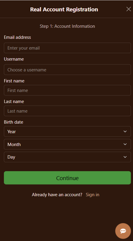 - Zadaj svoju e‑mailovú adresu, používateľské meno, krstné meno, priezvisko a dátum narodenia.