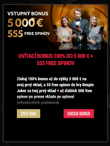Uvítací bonus 5 000 € + 555 free spinov
