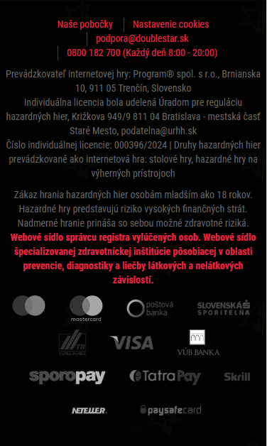 | Lokalita | Doublestar sk – legálne slovenské online kasíno |