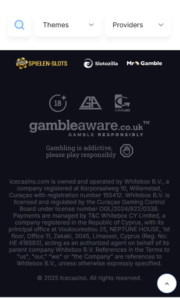 Ice Casino funguje na základe licencie vydanej regulátorom na Curaçau, čo je bežné pri medzinárodných online kasínach. Operátor je registrovaný v zahraničí (napr. Whitebox B.V., Curaçao; platby spravuje spoločnosť z Cypru) a podlieha tamojším zákonom.