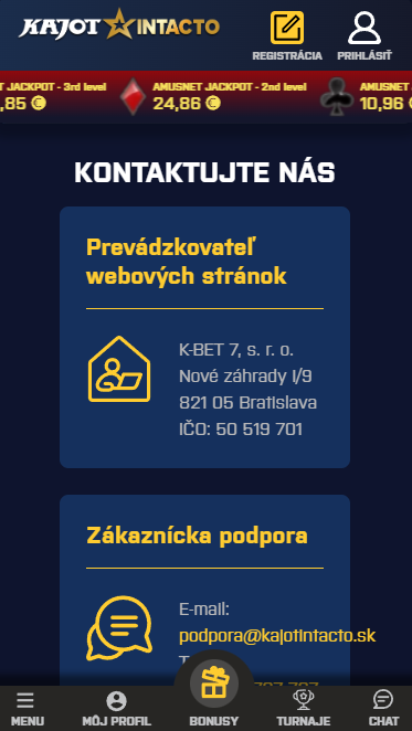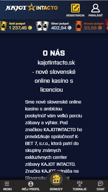 | Prevádzkovateľ | Kajot Intacto / licencia URHH |