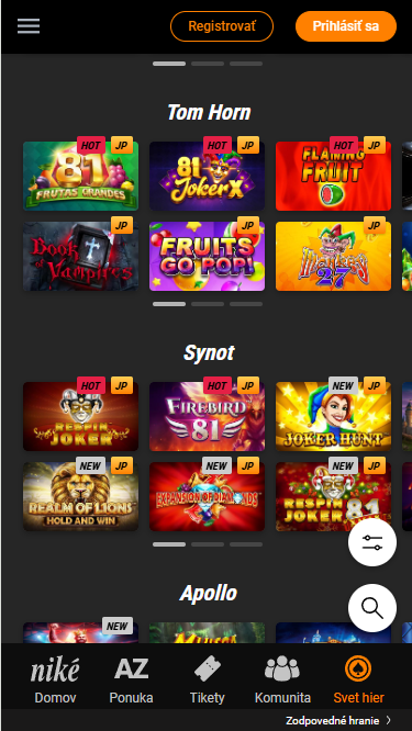 Niké Svet hier – automaty, jackpotové hry a Live Casino