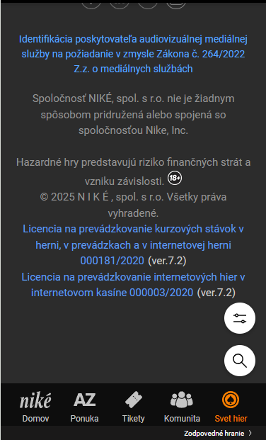 | Prevádzkovateľ | NIKÉ, spol. s r.o., Ilkovičova 34, 812 30 Bratislava (IČO 31364223) |