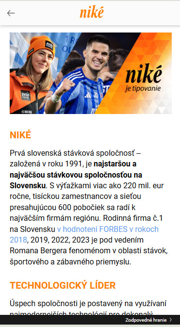 Pre používateľov, ktorí si nechcú nič inštalovať, je k dispozícii aj plnohodnotná mobilná verzia webu. Stačí otvoriť stránku Niké v prehliadači telefónu alebo tabletu. Web je responzívny, prispôsobí sa veľkosti obrazovky a umožní pohodlné hranie bez potreby sťahovania aplikácie.
