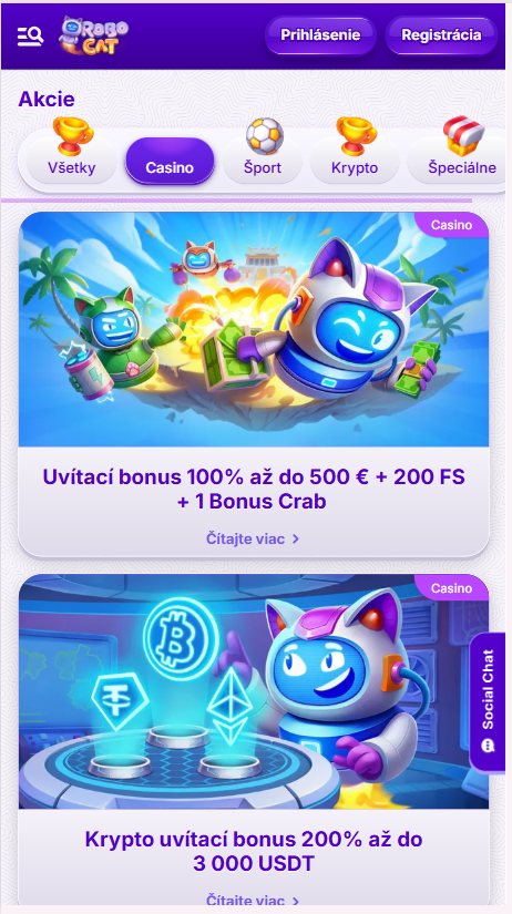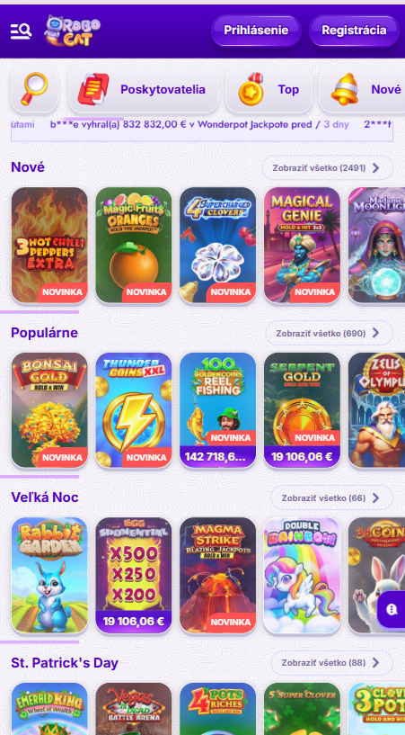 Robocat Casino pôsobí ako zaujímavá platforma pre hráčov zo Slovenska, ktorí radi skúšajú klasické sloty aj moderné kryptokasína. Veľký výber platobných metód, podpora viacerých jazykov a viac než 5000 hier vytvárajú pohodlné prostredie na hranie. Za zmienku stojí aj uvítací bonus a pravidelné turnaje, ktoré dokážu spríjemniť hru novým aj skúseným hráčom. Dizajn stránky je postavený na výraznej fialovo-modrej farebnej schéme s kreslenými mačacími postavičkami, ktoré dodávajú kasínu hravú atmosféru. Rozhranie je prehľadné – hry sú rozdelené do kategórií a k slotom, live stolom či turnajom sa dostanete len pár klikmi.