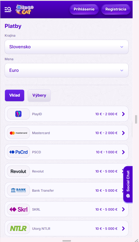V Robocat Casino môžu hráči jednoducho vkladať peniaze aj vyberať výhry vďaka širokej ponuke platobných metód. Platforma podporuje bankové karty, elektronické peňaženky, bankové prevody aj kryptomeny. Väčšina transakcií prebehne rýchlo a minimálny vklad sa vo väčšine prípadov začína od 10€. Maximálne limity závisia od zvolenej metódy a pri niektorých možnostiach môžu dosiahnuť až 5000€ na jednu transakciu.