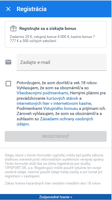 | Prevádzkovateľ | TIPSPORT SK, a.s. – licencovaná stávková kancelária na Slovensku |