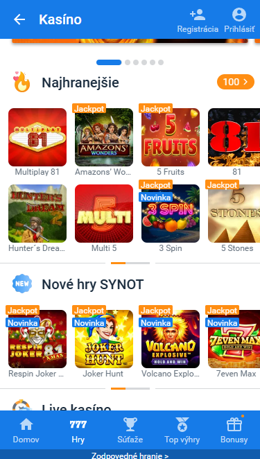 Kasínová časť Tipsport sk je postavená na silnej ponuke online automatov od slovenských aj zahraničných providerov.