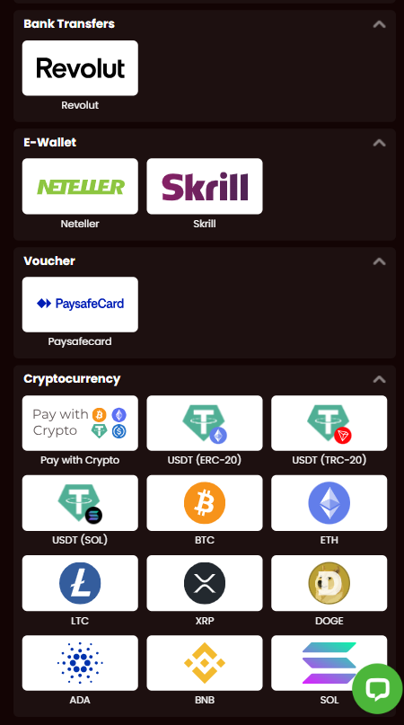 Po prihlásení do svojho účtu v crypto casino Slovensko choď do sekcie „Vklad“ alebo „Pokladňa“: