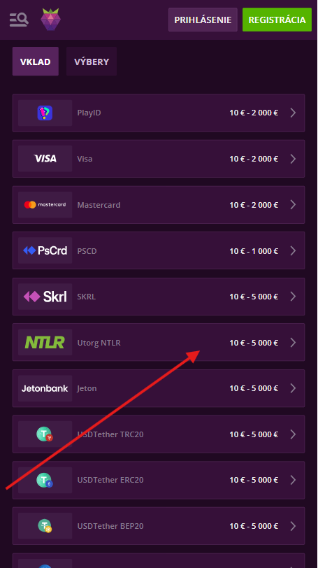 - Systém vklad automaticky zablokuje pre bonus. Kasíno rozpozná spôsob platby a nezobrazí ponuku bonusu, ak zistí, že si použil Neteller.